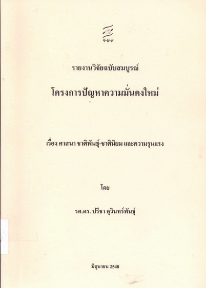 ศาสนา ชาติพันธุ์ - ชาตินิยม และความรุนแรง / ปรีชา คุวินทร์พันธุ์.