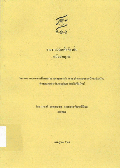 แนวทางการพึ่งพาตนเองของชุมชนด้านเศรษฐกิจและสุขภาพบ้านแม่แฮน้อย ตำบลแม่นาจร อำเภอแม่แจ่ม จังหวัดเชียงใหม่ / มงคล พัฒนาคีรีเขต.