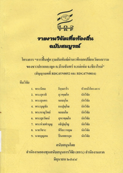 การฟื้นฟูความสัมพันธ์ผ่านเวทีแลกเปลี่ยนวัฒนธรรมของชาวปกาเกอะญอ ต.บ้านจันทร์ อ.แม่แจ่ม จ.เชียงใหม่ / พระสุชาติ สุวฑฺฒโก.