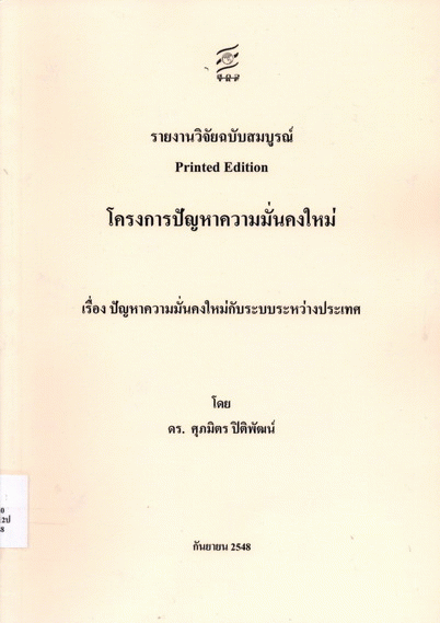 ปัญหาความมั่นคงใหม่กับระบบระหว่างประเทศ / ศุภมิตร ปิติพัฒน์.