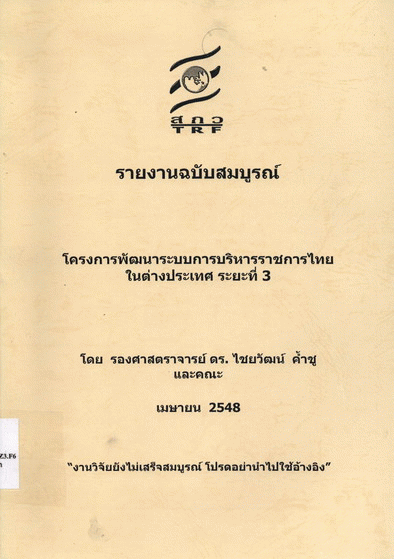 โครงการพัฒนาระบบการบริหารราชการไทยในต่างประเทศ ระยะที่ 3 / ไชยวัฒน์ ค้ำชู และคณะ.