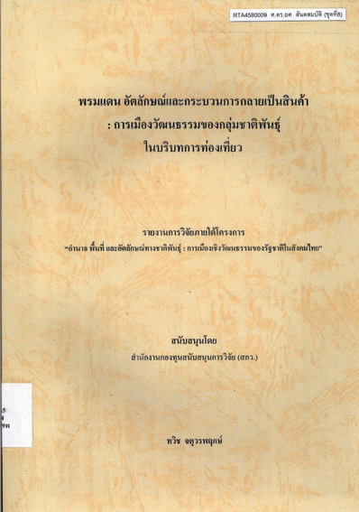 พรมแดน อัตลักษณ์และกระบวนการกลายเป็นสินค้า : การเมืองวัฒนธรรมของกลุ่มชาติพันธุ์ในบริบทการท่องเที่ยว / ทวิช จตุวรพฤกษ์.