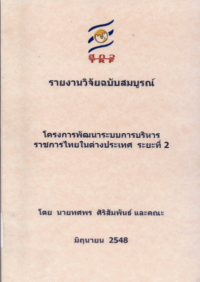 โครงการพัฒนาระบบการบริหารราชการไทยในต่างประเทศ ระยะที่ 2 / ทศพร ศิริสัมพันธ์ และคณะ.