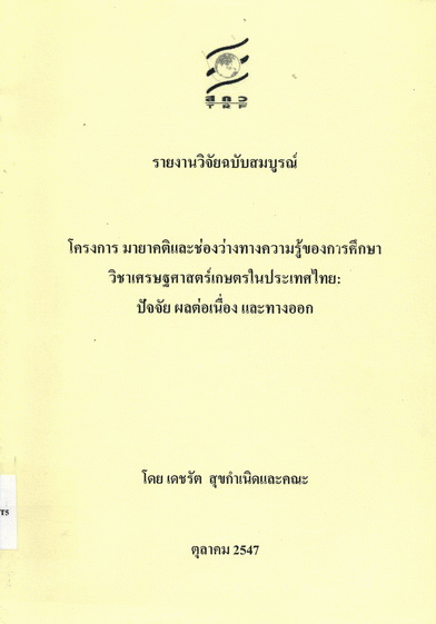 โครงการ มายาคติและช่องว่างทางความรู้ของการศึกษาวิชาเศรษฐศาสตร์เกษตรในประเทศไทย : ปัจจัย ผลต่อเนื่องและทางออก / เดชรัต สุขกำเนิด และคณะ.