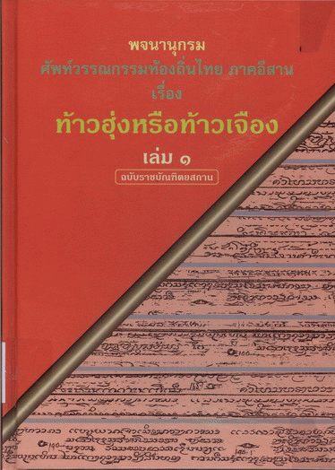 พจนานุกรมศัพท์วรรณกรรมท้องถิ่นไทย ภาคอีสาน เรื่อง ท้าวฮุ่งหรือท้าวเจือง เล่ม 1 ฉบับราชบัณฑิตยสถาน / ราชบัณฑิตยสถาน.