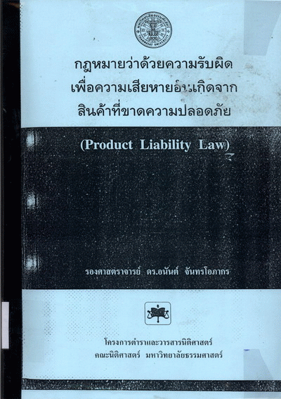 กฎหมายว่าด้วยความรับผิดเพื่อความเสียหายอันเกิดจากสินค้าที่ขาดความปลอดภัย = Product liability law / อนันต์ จันทรโอภากร.