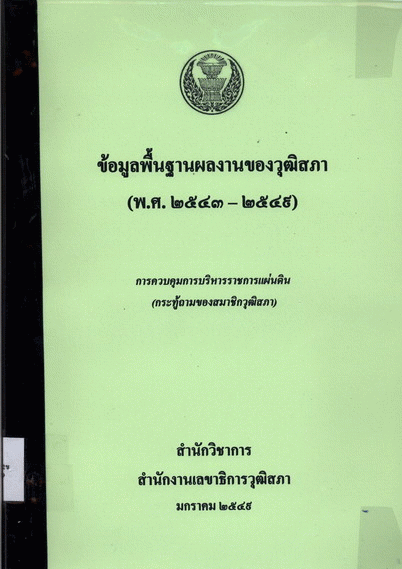 ข้อมูลพื้นฐานผลงานของวุฒิสภา (พ.ศ.2543-2549) : การควบคุมการบริหารราชการแผ่นดิน (กระทู้ถามของสมาชิกวุฒิสภา) / สำนักวิชาการ. สำนักงานเลขาธิการวุฒิสภา.