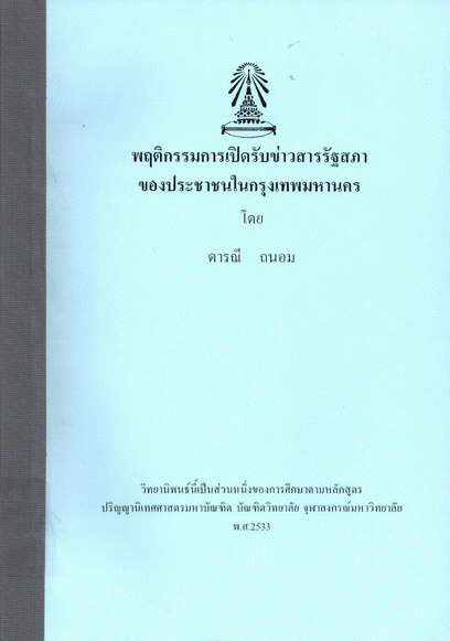 พฤติกรรมการเปิดรับข่าวสารรัฐสภาของประชาชนในกรุงเทพมหานคร / ดารณี ถนอม.