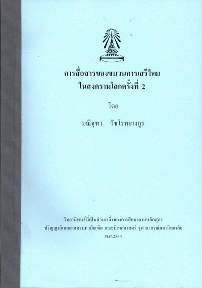 การสื่อสารของขบวนการเสรีไทยในสงครามโลกครั้งที่ 2 / มณีจุฑา วัชโรทยางกูร