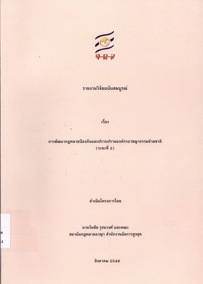 การพัฒนากฎหมายป้องกันและปราบปรามองค์กรอาชญากรรมข้ามชาติ (ระยะที่ 2) : การฉ้อราษฎร์บังหลวงและมาตรการในการต่อต้านองค์กรอาชญากรรมข้ามชาติ (เล่ม 6) / วันชัย รุจนวงศ์ และคณะ