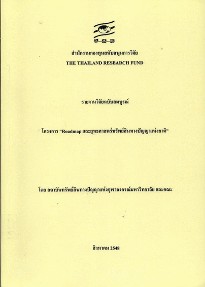 โครงการ Roadmap และยุทธศาสตร์ทรัพย์สินทางปัญญาแห่งชาติ / สถาบันทรัพย์สินทางปัญญาแห่งจุฬาลงกรณ์มหาวิทยาลัย ; วิศณุ ทรัพย์สมพล.