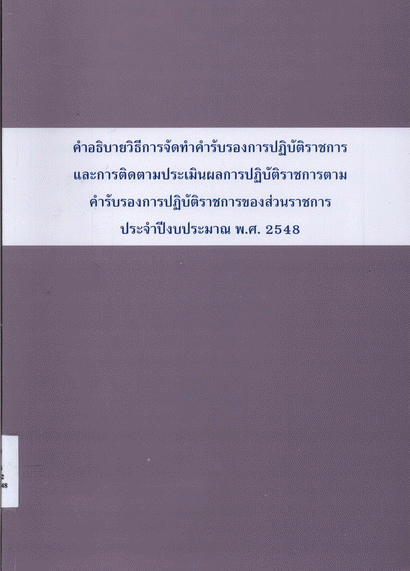 National Assembly Library of Thailand | Government Publications collection | นร 352 2548 (เรียกดูชั้นหนังสือ(เปิดด้านล่าง)) | พร้อมให้บริการ | 3961158084 |