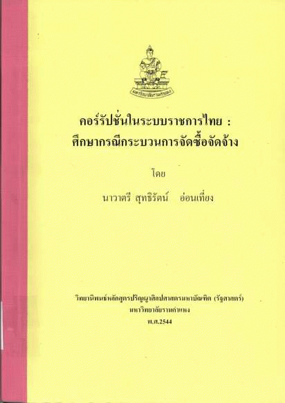 คอร์รัปชั่นในระบบราชการไทย : ศึกษากรณีกระบวนการจัดซื้อจัดจ้าง / สุทธิรัตน์ อ่อนเที่ยง.