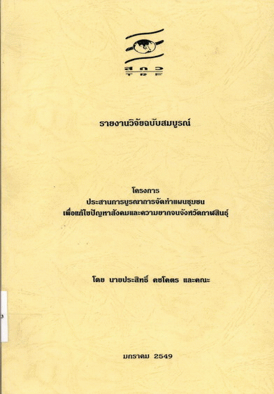 โครงการประสานการบูรณาการจัดทำแผนชุมชนเพื่อแก้ไขปัญหาสังคมและความยากจนจังหวัดกาฬสินธุ์ / ประสิทธิ์ คชโคตร และคณะ