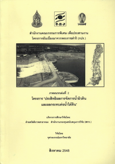 โครงการ "ประสิทธิผลการจัดการน้ำผิวดินและผลกระทบต่อน้ำใต้ดิน" (ภาคผนวก เล่มที่ 2) / ชัยยุทธ สุขศรี...[และคนอื่น ๆ] ; จุฬาลงกรณ์มหาวิทยาลัย.
