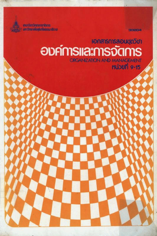 เอกสารการสอนชุดวิชา องค์การและการจัดการ หน่วยที่ 9-15 / สาขาวิชาวิทยาการจัดการ มหาวิทยาลัยสุโขทัยธรรมาธิราช.