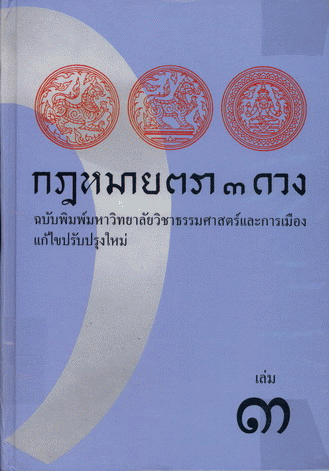 กฎหมายตรา 3 ดวง ฉบับพิมพ์มหาวิทยาลัยธรรมศาสตร์และการเมือง แก้ไขปรับปรุงใหม่ เล่ม 3.