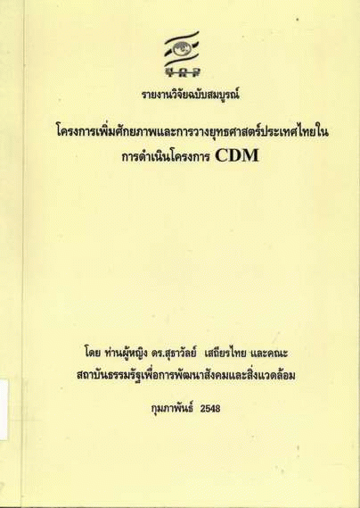 โครงการเพิ่มศักยภาพและการวางยุทธ์ศาสตร์ประเทศไทยในการดำเนินโครงการ CDM / ท่านผู้หญิง สุธาวัลย์ เสถียรไทย.