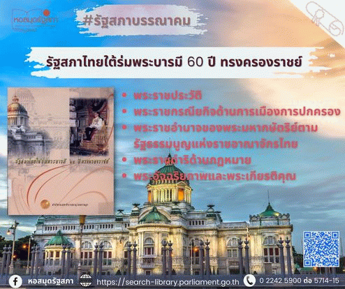 รัฐสภาไทยใต้ร่มพระบารมี 60 ปี ทรงครองราชย์ / คณะทำงานจัดนิทรรศการในคณะอนุกรรมการจัดกิจกรรมเฉลิมพระเกียรติฯ สำนักงานเลขาธิการสภาผู้แทนราษฎร.