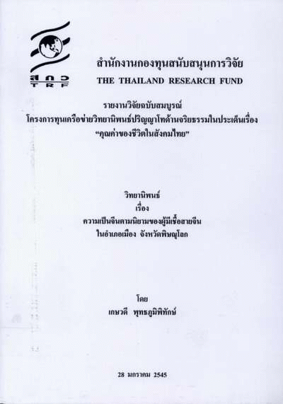 ความเป็นจีนตามนิยามของผู้มีเชื้อสายจีนในอำเภอเมือง จังหวัดพิษณุโลก / เกษวดี พุทธภูมิพิทักษ์
