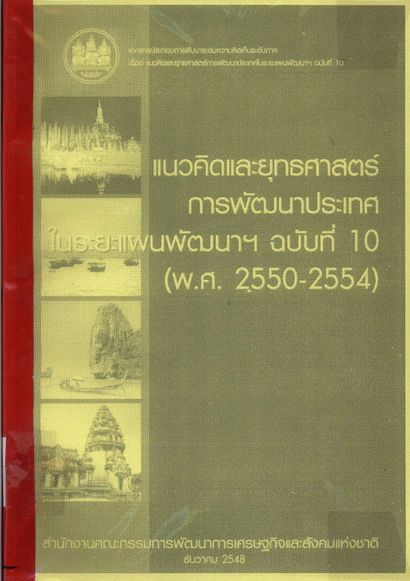 แนวคิดและยุทธศาสตร์การพัฒนาประเทศในระยะแผนพัฒนาฯ ฉบับที่ 10 (พ.ศ. 2550-2554) / สำนักงานคณะกรรมการพัฒนาการเศรษฐกิจและสังคมแห่งชาติ.
