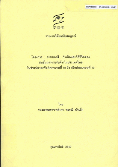 โครงการ : ระบบกงสี : กำเนิดและวิถีชีวิตของชนชั้นแรงงานรับจ้างในประเทศไทยในช่วงปลายคริสต์ศตวรรษที่ 18 ถึง คริสต์ศตวรรษที่ 19 / พรรณี บัวเล็ก.