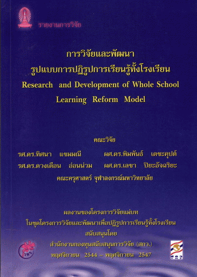 การวิจัยและพัฒนารูปแบบการปฏิรูปการเรียนรู้ทั้งโรงเรียน = Research and Development of whole school learning reform model / ทัศนา แขมณี...[และคนอื่น ๆ]