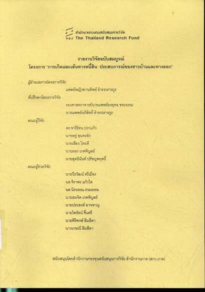 การเกิดและเส้นทางหนี้สิน : ประสบการณ์ของชาวบ้านและทางออก / ทานทิพย์ ธำรงวรางกูร และคณะ.