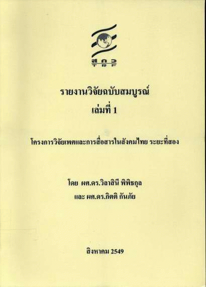 โครงการวิจัยเพศและการสื่อสารในสังคมไทย ระยะที่สอง เล่มที่ 1 / วิลาสินี พิพิธกุล, กิตติ กันภัย.
