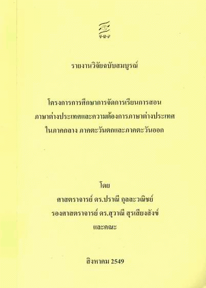 โครงการการศึกษาการจัดการเรียนการสอนภาษาต่างประเทศและความต้องการภาษาต่างประเทศในภาคกลาง ภาคตะวันตกและภาคตะวันออก / ปราณี กุลละวณิชย์...[และคนอื่น ๆ].
