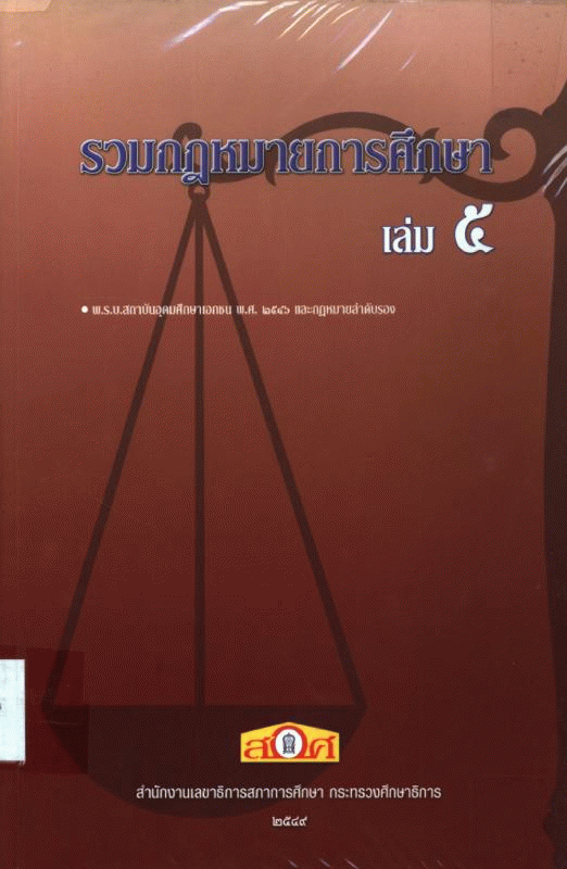 รวมกฎหมายการศึกษา (ฉบับผู้ปฏิบัติ) เล่ม 5 / สำนักพัฒนากฎหมายการศึกษา สำนักงานเลขาธิการสภาการศึกษา.