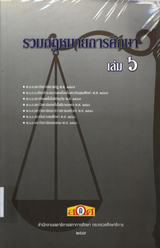 รวมกฎหมายการศึกษา (ฉบับผู้ปฏิบัติ) เล่ม 6 / สำนักพัฒนากฎหมายการศึกษา สำนักงานเลขาธิการสภาการศึกษา.