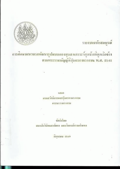การศึกษาแนวทางพัฒนารูปแบบกองทุนสงเคราะห์ลูกจ้างที่ถูกเลิกจ้างตามพระราชบัญญัติคุ้มครองแรงงาน พ.ศ. 2541 / ประเสริฐ ตัณศิริ...[และคณะ]