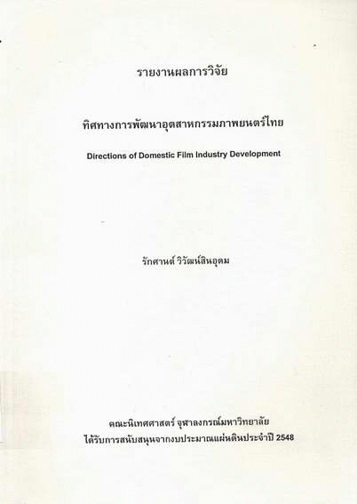 ทิศทางการพัฒนาอุตสาหกรรมภาพยนตร์ไทย = Directions of domestic film industry development / รักศานต์ วิวัฒน์สินอุดม
