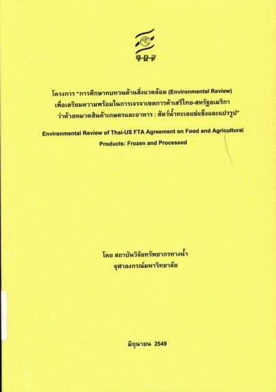 การศึกษาทบทวนด้านสิ่งแวดล้อม (Environmental Review) เพื่อเตรียมความพร้อมในการเจรจาเขตการค้าเสรีไทย-สหรัฐอเมริกาว่าด้วยหมวดสินค้าเกษตรและอาหาร : สัตว์น้ำทะเลแช่แข็งและแปรรูป