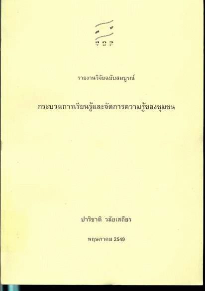 กระบวนการเรียนรู้และจัดการความรู้ของชุมชน / ปาริชาติ วลัยเสถียร.