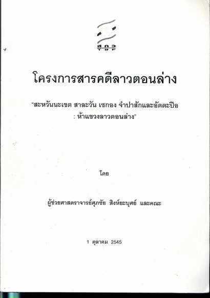 โครงการสารคดีลาวตอนล่าง "สะหวันนะเขต สาละวัน เซกอง จำปาสักและอัตตะปือ : ห้าแขวงลาวตอนล่าง" / ศุภชัย สิงห์ยะบุศย์.