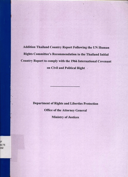 Addition Thailand country report following the UN human rights committee's recommendation to the Thailand lnitial country report to complay with the 1966 international covenant on civil and political right