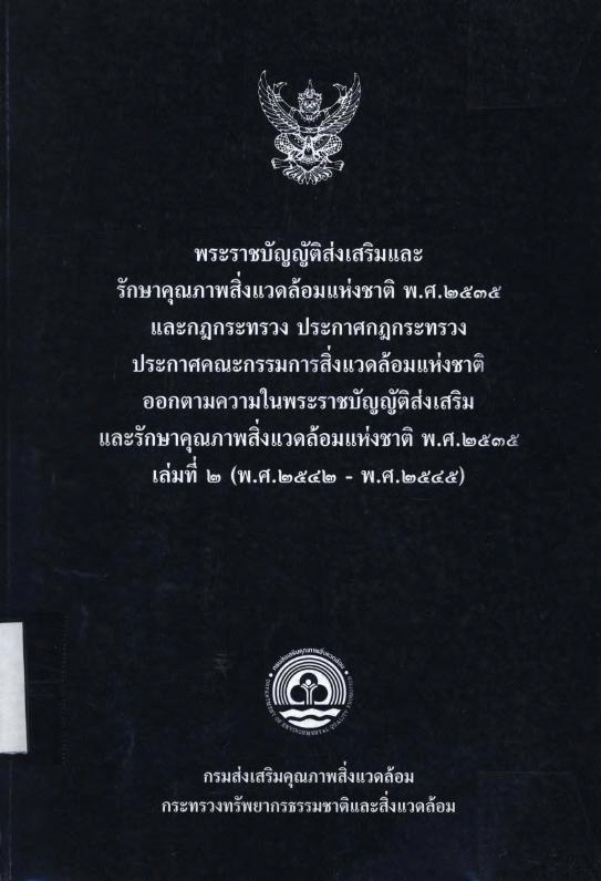 พระราชบัญญัติส่งเสริมและรักษาคุณภาพสิ่งแวดล้อมแห่งชาติ พ.ศ. 2535 และกฎกระทรวง ประกาศกฎกระทรวง ประกาศคณะกรรมการสิ่งแวดล้อม ออกตามความในพระราชบัญญัติส่งเสริมและรักษาคุณภาพสิ่งแวดล้อมแห่งชาติ พ.ศ. 2535 เล่มที่ 2 (พ.ศ. 2542 - พ.ศ. 2545)