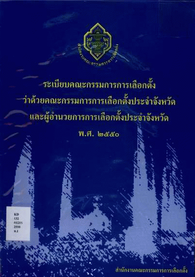 ระเบียบคณะกรรมการการเลือกตั้งว่าด้วยคณะกรรมการการเลือกตั้งประจำจังหวัดและผู้อำนวยการการเลือกตั้งประจำจังหวัด พ.ศ. 2550 / สำนักงานคณะกรรมการการเลือกตั้ง.