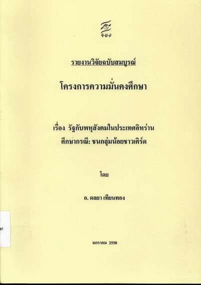 รัฐกับพหุสังคมในประเทศอิหร่าน ศึกษากรณี : ชนกลุ่มน้อยชาวเคิร์ด / ดลยา เทียนทอง.