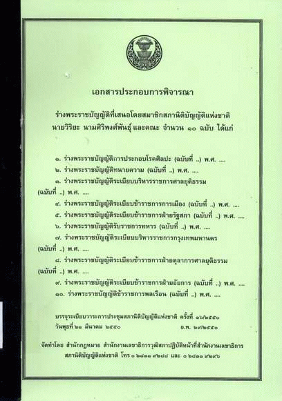 National Assembly Library of Thailand | Parliamentary Publications Collection | Parliamentary Publications Shelves | สว 12 5.4 328.373 2550/10 (เรียกดูชั้นหนังสือ(เปิดด้านล่าง)) | พร้อมให้บริการ | 3961165222 |