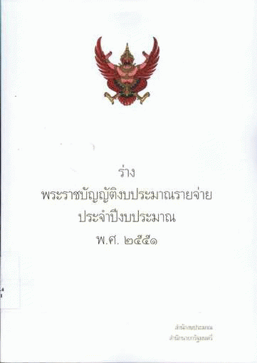 ร่างพระราชบัญญัติงบประมาณรายจ่าย ประจำปีงบประมาณ พ.ศ. 2551 / สำนักงบประมาณ.