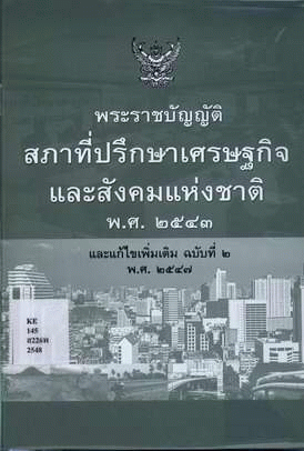 พระราชบัญญัติสภาที่ปรึกษาเศรษฐกิจและสังคมแห่งชาติ พ.ศ. 2543 และแก้ไขเพิ่มเติม ฉบับที่ 2 พ.ศ. 2547 / สำนักงานสภาที่ปรึกษาเศรษฐกิจและสังคมแห่งชาติ.