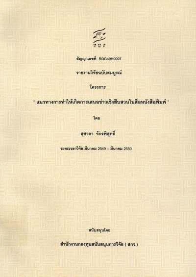 แนวทางการทำให้เกิดการเสนอข่าวเชิงสืบสวนในสื่อหนังสือพิมพ์ / สุชาดา จักรพิสุทธิ์.