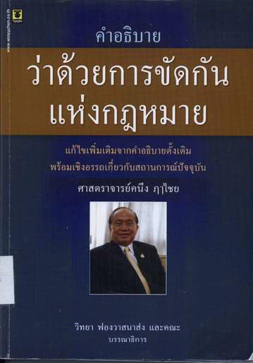 คำอธิบายว่าด้วยการขัดกันแห่งกฎหมาย : แก้ไขเพิ่มเติมจากคำอธิบายดั้งเดิม พร้อมเชิงอรรถเกี่ยวกับสถานการณ์ปัจจุบัน / คนึง ฦาไชย ; วิทยา ฟองวาสนาส่ง และคณะ, บรรณาธิการ.