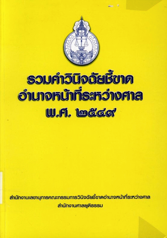 รวมคำวินิจฉัยชี้ขาดอำนาจหน้าที่ระหว่างศาล พ.ศ. 2549 / สำนักงานเลขานุการคณะกรรมการวินิจฉัยชี้ขาดอำนาจหน้าที่ระหว่างศาล. สำนักงานศาลยุติธรรม.