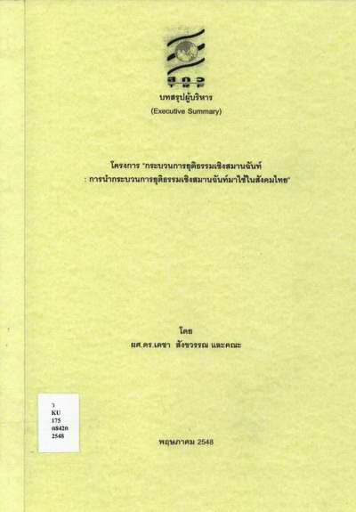 กระบวนการยุติธรรมเชิงสมานฉันท์ : การนำกระบวนการยุติธรรมเชิงสมานฉันท์มาใช้ในสังคมไทย (บทสรุปผู้บริหาร) / เดชา สังขวรรณ, จุฑารัตน์ พูลเกษ, รุ่งนภา เทพภาพ.