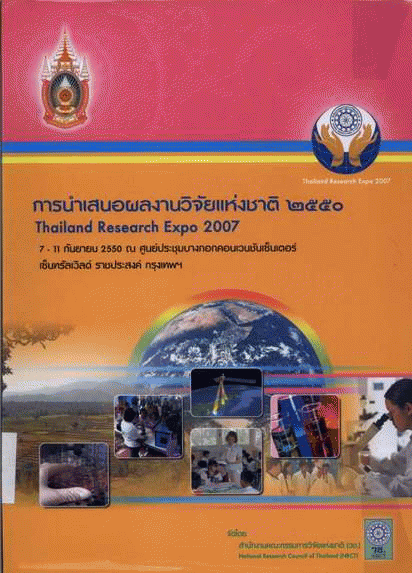 การนำเสนอผลงานวิจัยแห่งชาติ 2550 (Thailand Research Expo 2007) 7-11 กันยายน 2550 ณ ศูนย์ประชุมบางกอกคอนเวนชันเซ็นเตอร์ เซ็นทรัลเวิลด์ ราชประสงค์ กรุงเทพฯ / กระทรวงทรัพยากรธรรมชาติและสิ่งแวดล้อม. กรมทรัพยากรน้ำ