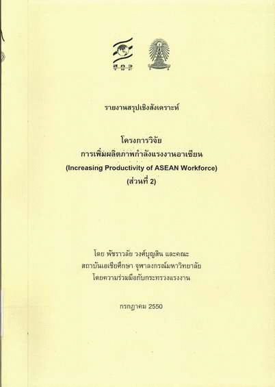 การเพิ่มผลิตภาพกำลังแรงงานอาเซียน ส่วนที่ 2 : รายงานสรุปเชิงสังเคราะห์ / พัชราวลัย วงศ์บุญสินและคณะ